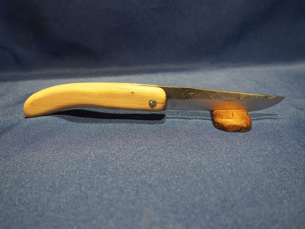 Je peux ainsi choisir l'acier corresspondant à l'utilisation du couteau, car je n'utise pas le même aciers pour un couteau à beurre que pour un couteau de chasse.